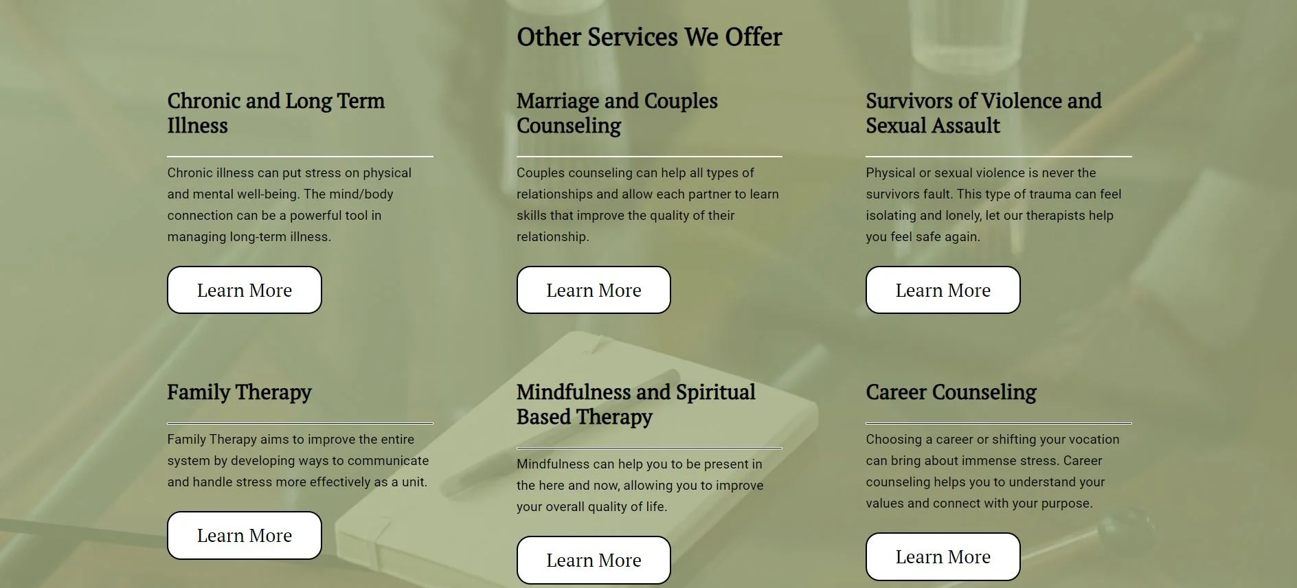 Here are some Icons to be used on the site’s main page for various mental health services as well.